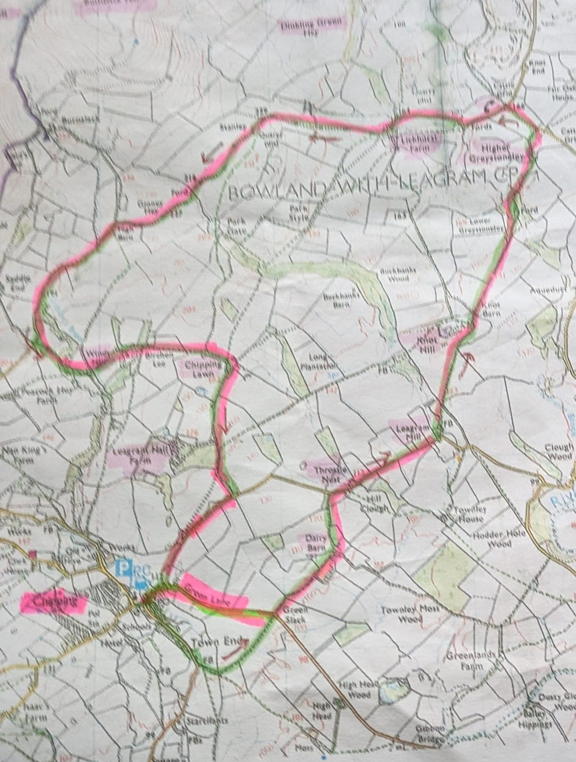 Circular walk from Chipping, out via Chipping Lawn,then across to Saddle Farm and up onto Saddle Fell. Crossing Wolf Fell we arrive at Paddys Pole at the summit of Fairsnape Fell. From here we follow the fabulous ridge walk up to Parlick crossing Blinhurst Fell. From here we descend to Blindhurst Farm, we then head to Lower Cock Hill, crossing the Gliding Club runway. We then head back via Cold Coates to Clark House, then back down into Chipping for post walk refreshments before our journey home. (Update - Walk will be most likely now be walked clockwise to avoid duplication with the B walk)