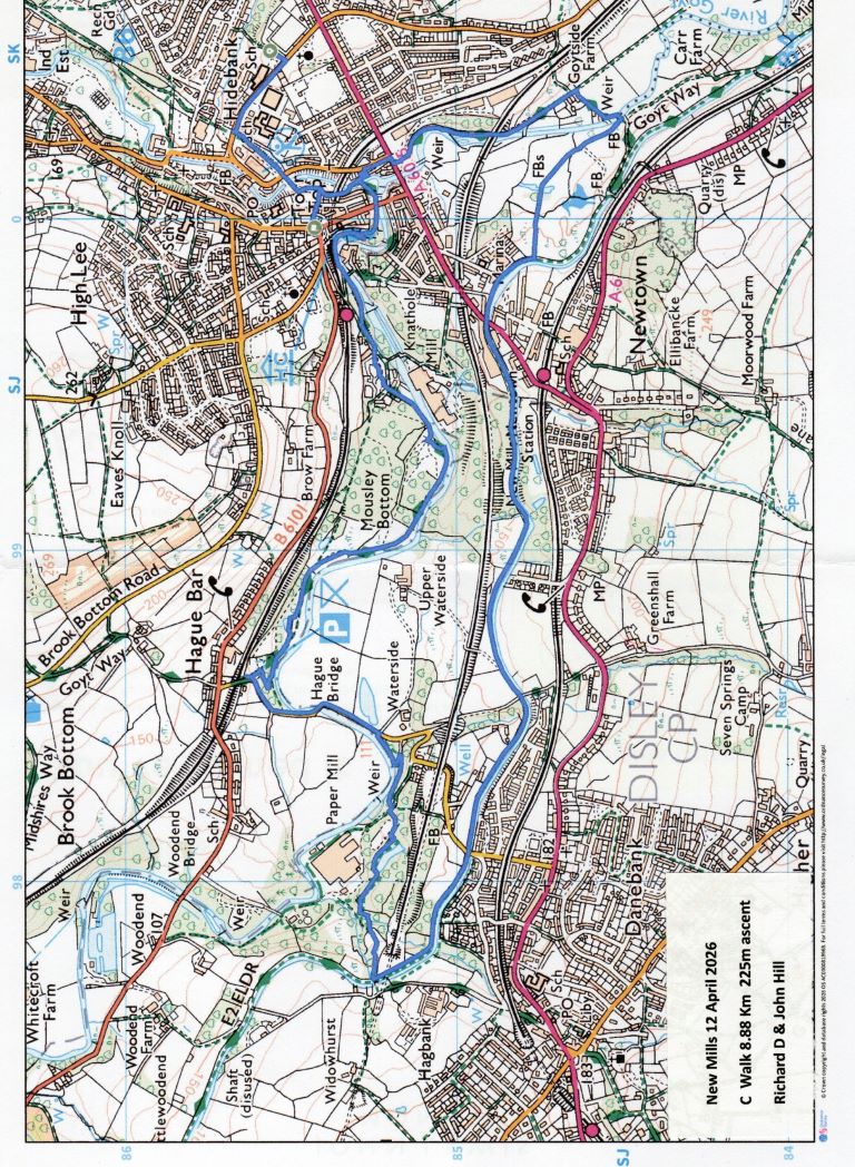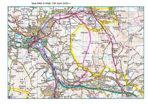 Our 4th walk of the year takes us to New Mills in Derbyshire just 8 miles from Stockport,noteable local landmarks include nearby Lyme Park. The town has a good selection of pubs & coffee/tea shops in the town for after walk refreshments.