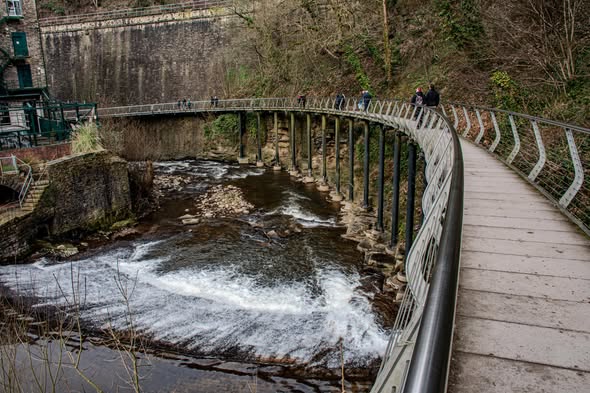 From here we take an old tramway route to Bugsworth Basin and onto the Peak Valley Canal towpath where there are plenty of longboats of all shapes and sizes and a large marina. We leave the canal at the Swizzles sweet factory and make our way onto the impressive millennium walkway hanging over the river. We end up in the Torrs Riverside Parks from which there is a walkway back to the coach and pub.