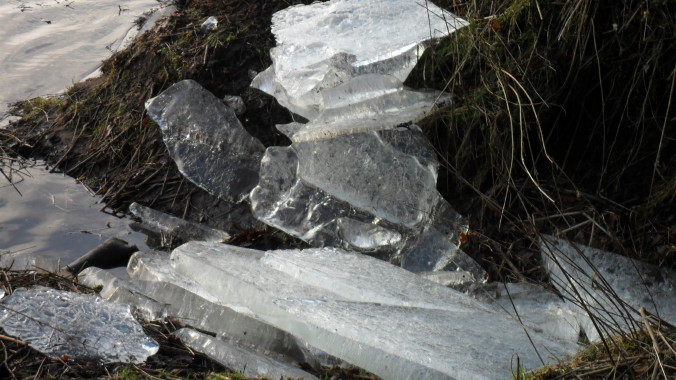 | Despite the sun, there were still thick slabs of ice on the river bank | |||||