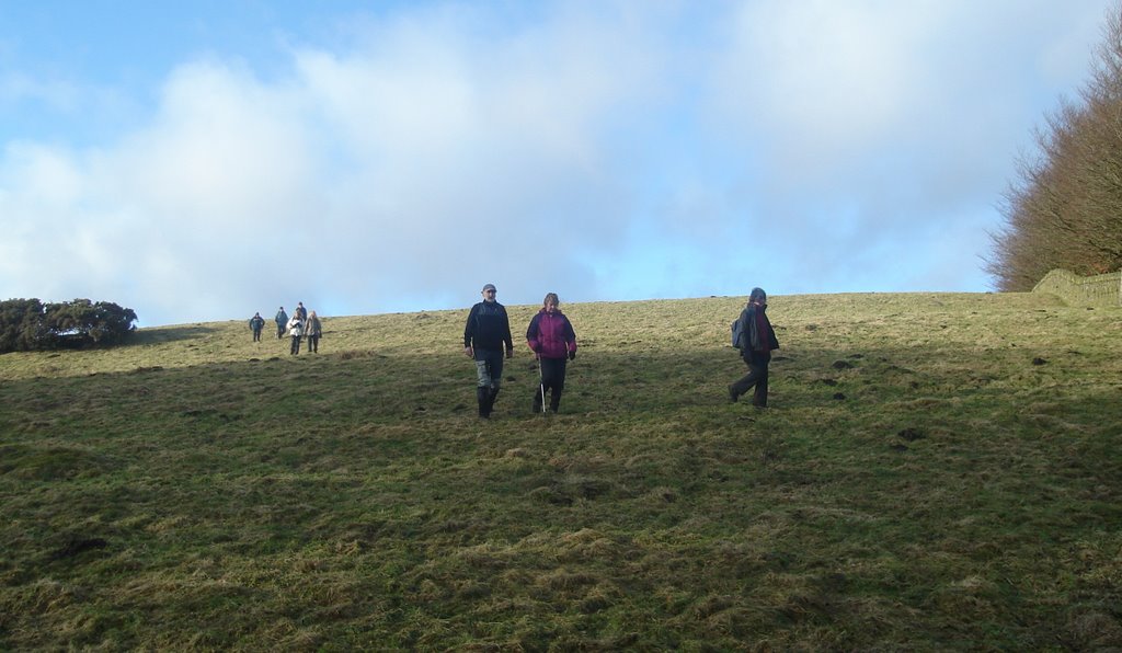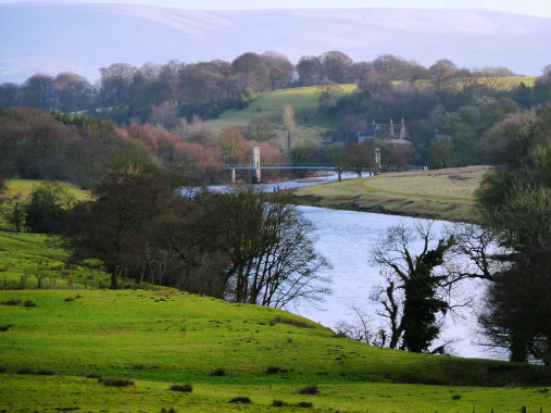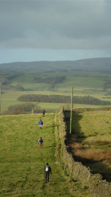 | There dropping down the rear slope into the valley. The return took us to Planetree Farm , Chaigley Hall Wood and on to Kemple End. From this point they headed toward the towers of Stoneyhurst College and it's imposing Buildings. | |||||