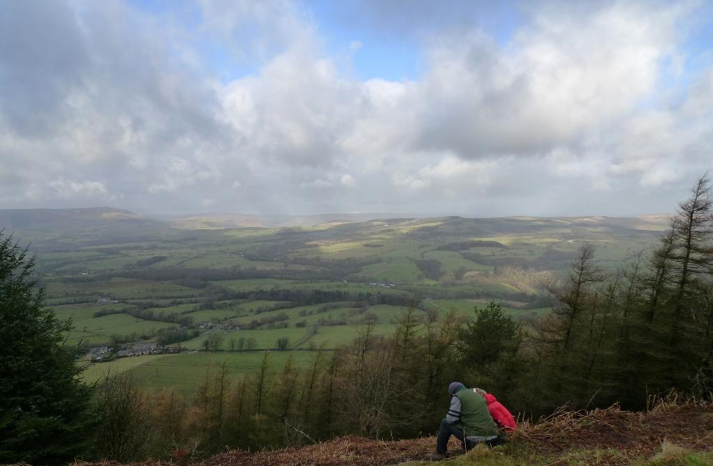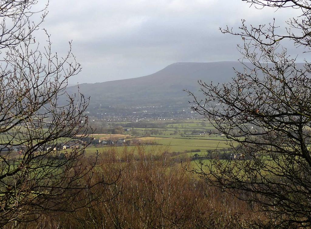 | then climbing up Longridge fell with views of Pendle across the valley | |