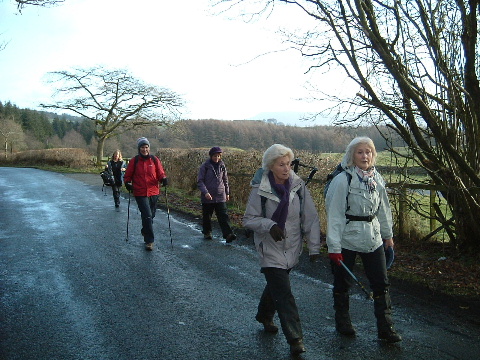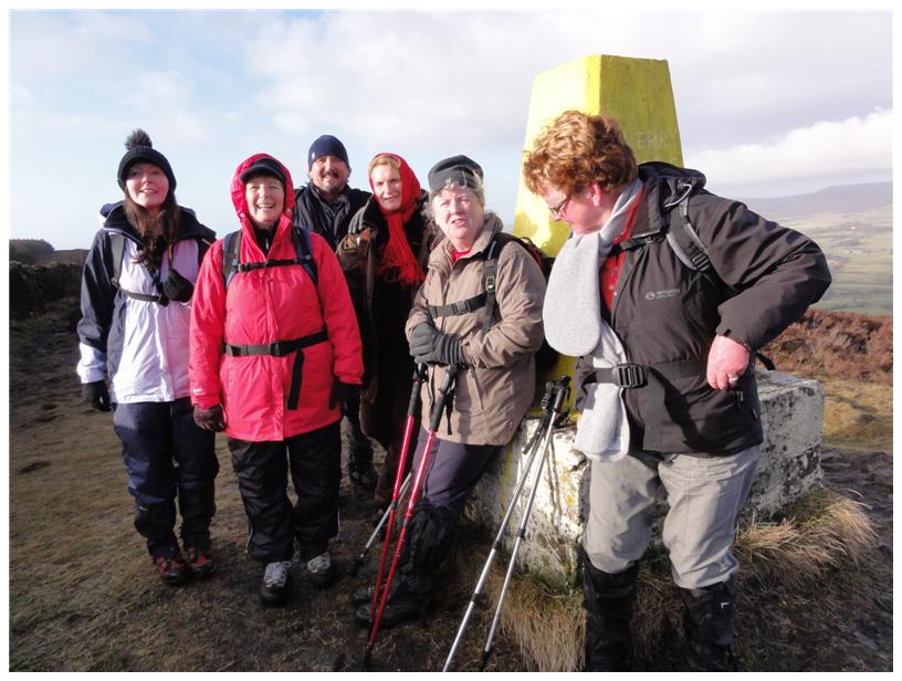The circular walk took her group from Hurst Green up to Longridge Fell, and the highest point Spire Hill (trig point 350m) | ||||