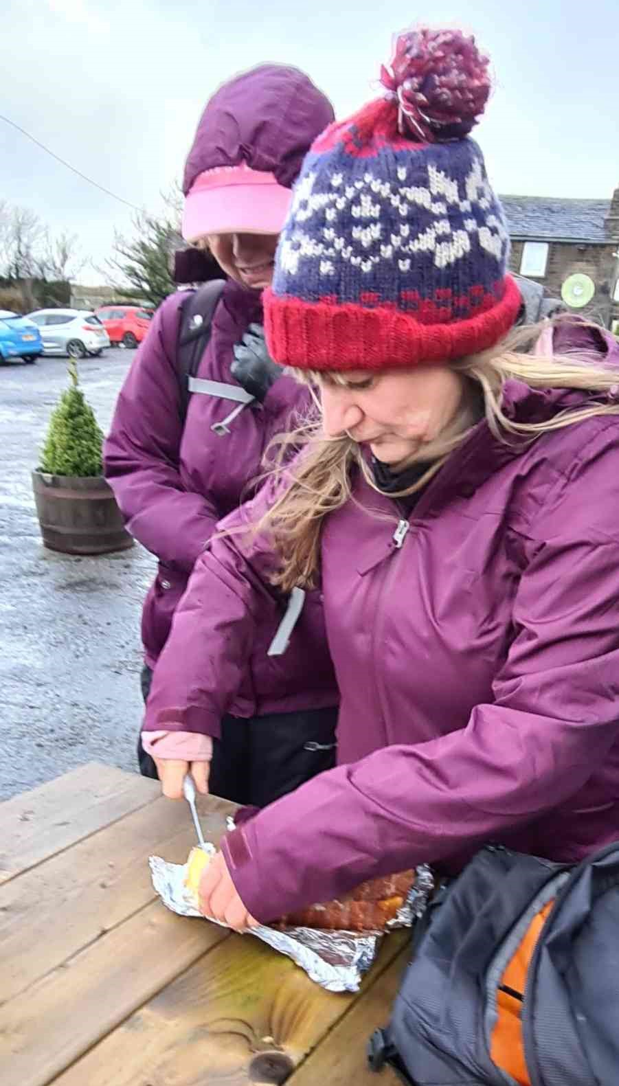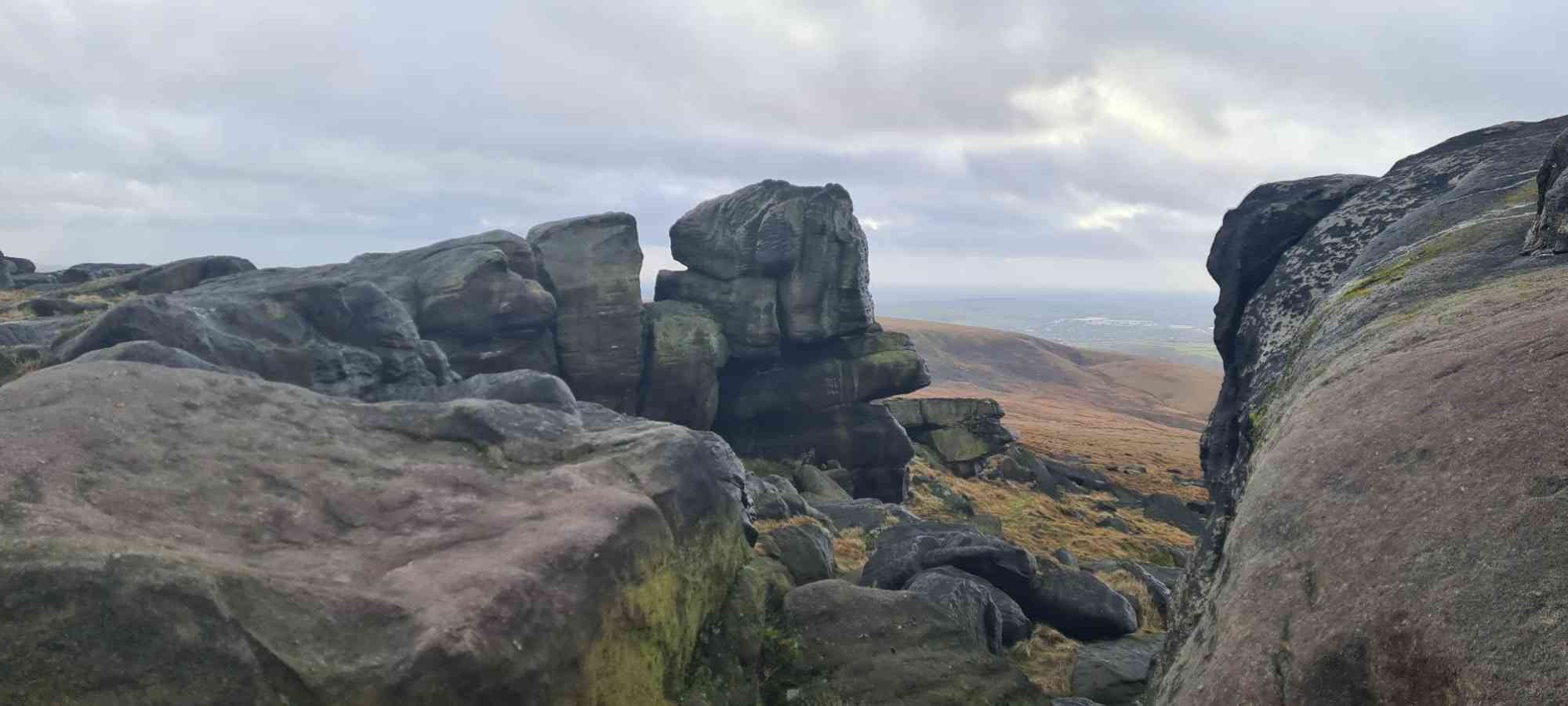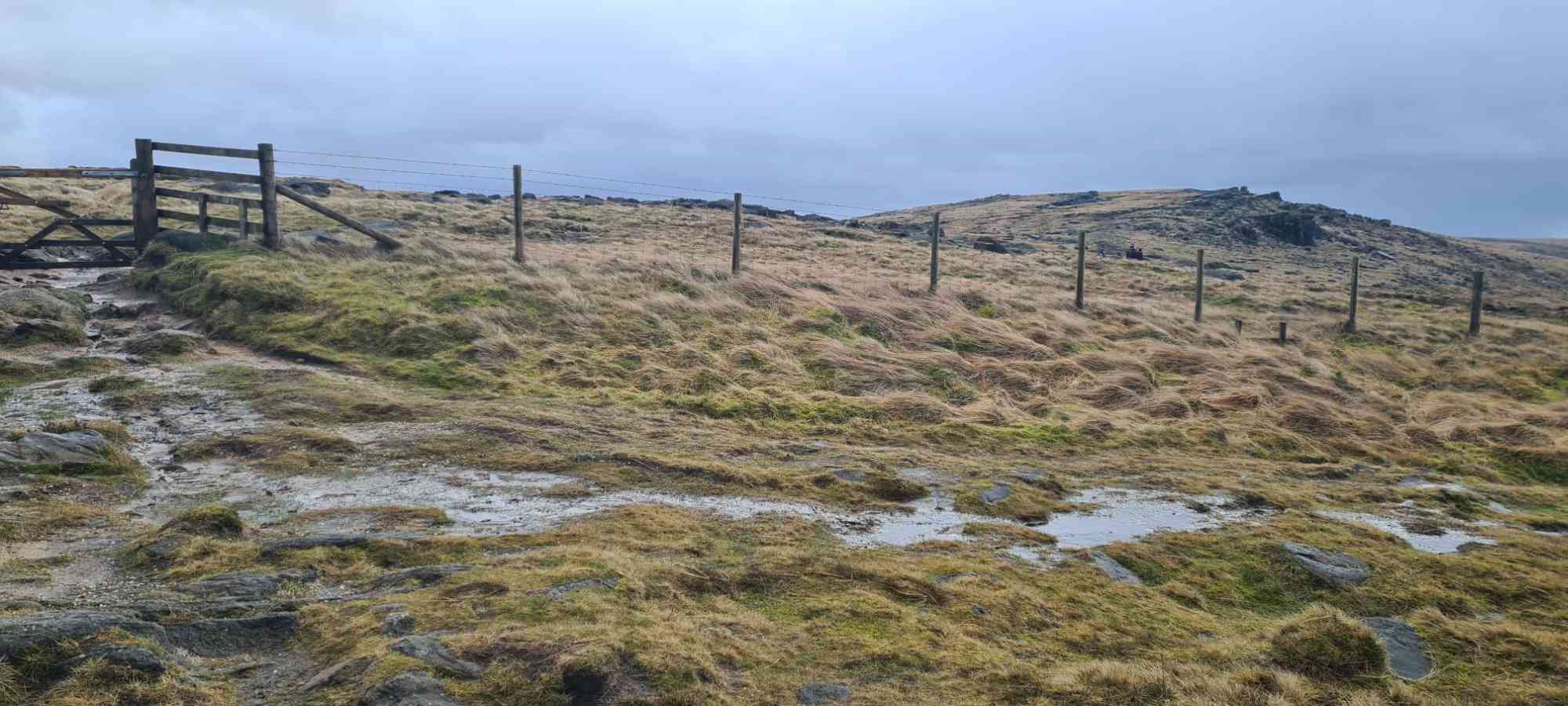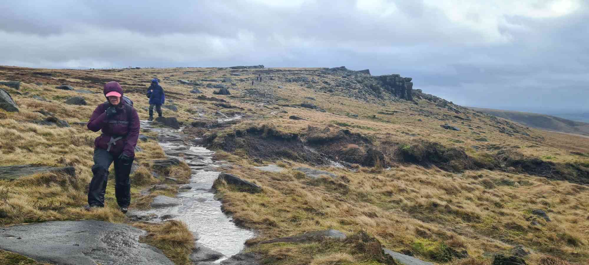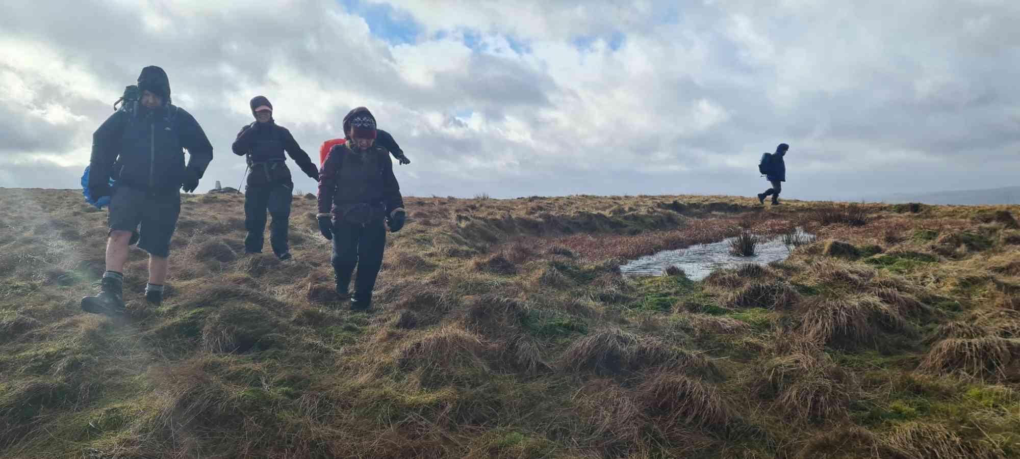 | Alan's take on the weather: "... like something out of a 70s horror movie 9 miles of howling wind, driving heavy rain and hail stones the size of golf balls on the bleak miserable moors. Felt like Jayne Eyre lost on her way to Lord Rochester's pad. 36 hardy souls survived the ordeal". The photos look rather less dramatic - these are mostly fron the A walk: | |||||