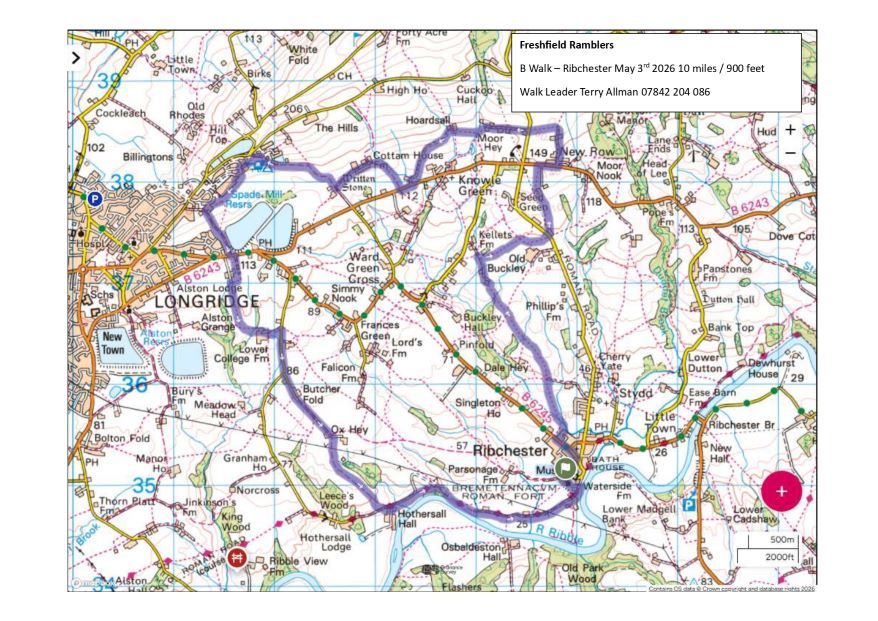 Our 5th walk of the year takes us to Ribchester in the heart of the Ribble Valley, a town with historic ruins dating back to Roman times including the Bath House ruins and the local Roman museum amongst others, well worth a look around, including great views of the county from the banks of the Ribble. The town has a good selection of pubs & coffee/tea shops in the town for after walk refreshments. The White Bull Pub is a good place to visit, centrally placed with the beer garden backing onto the ruins from the Roman Bath House.